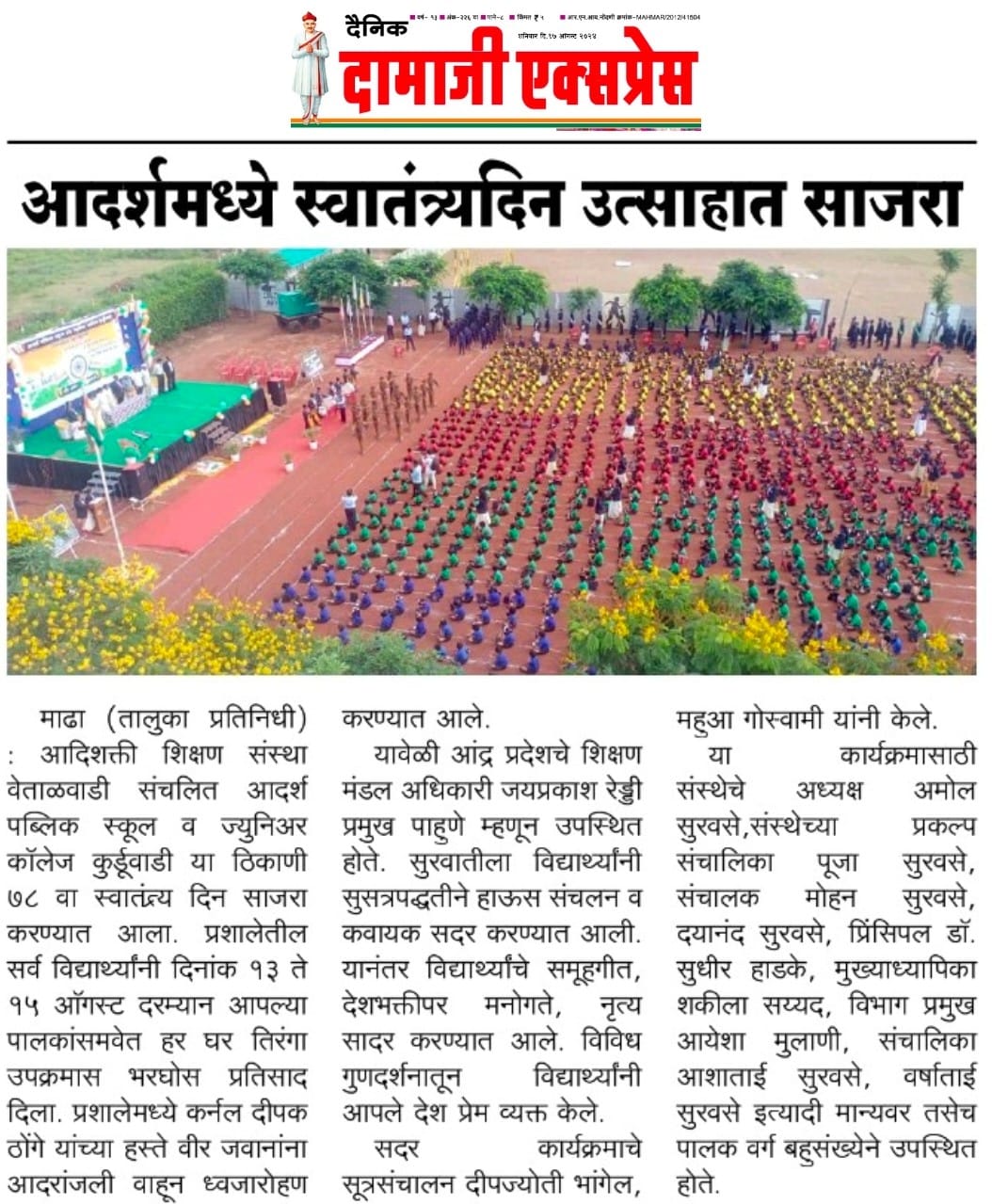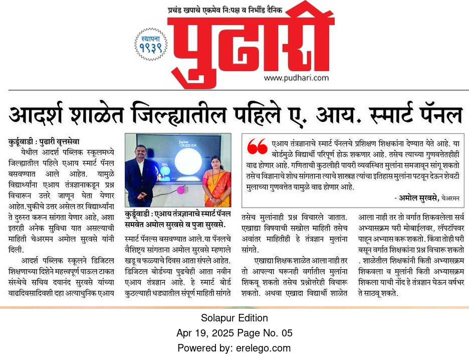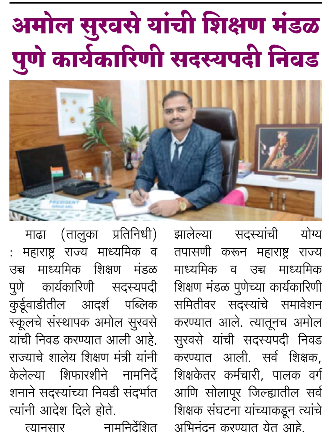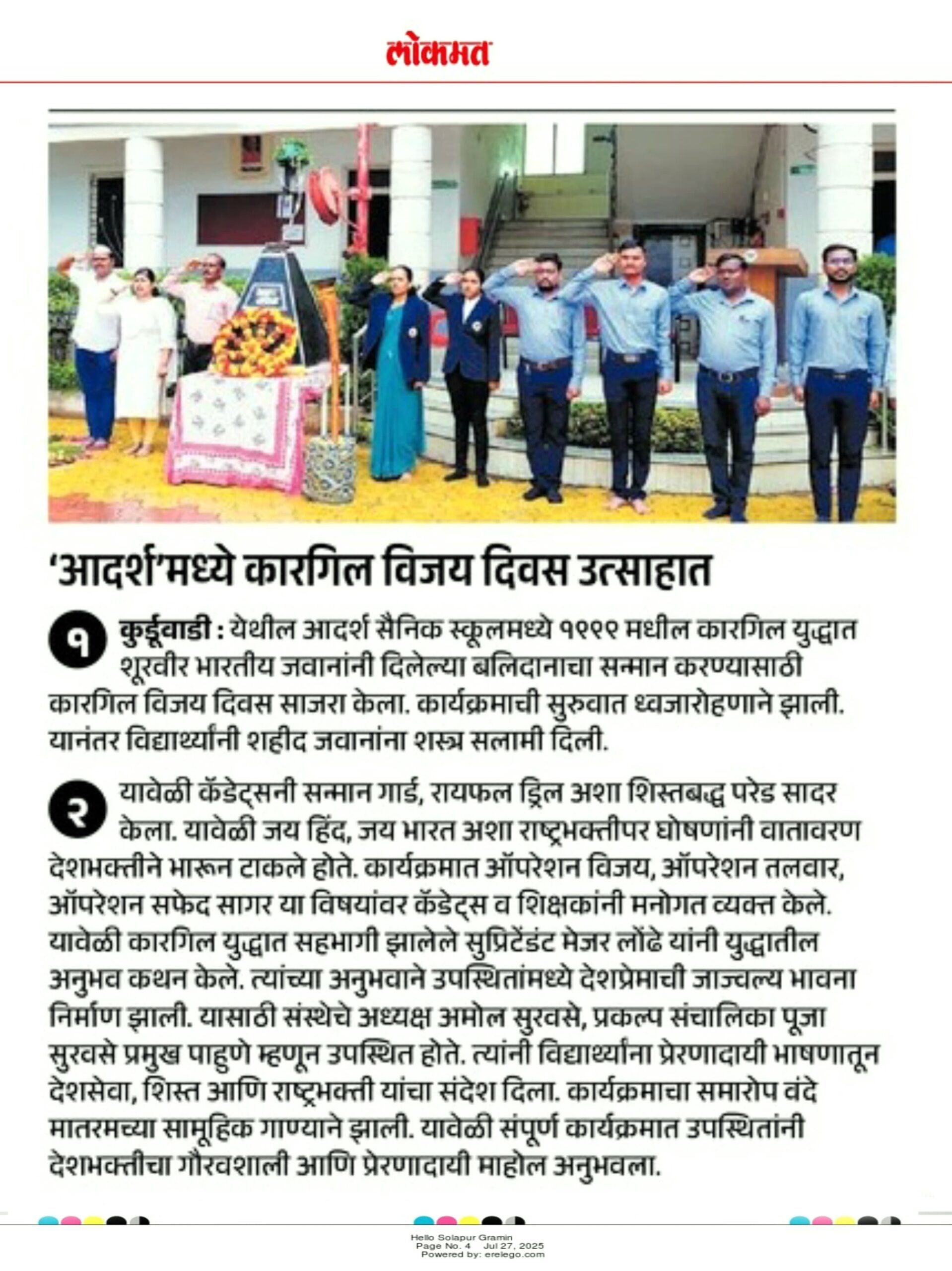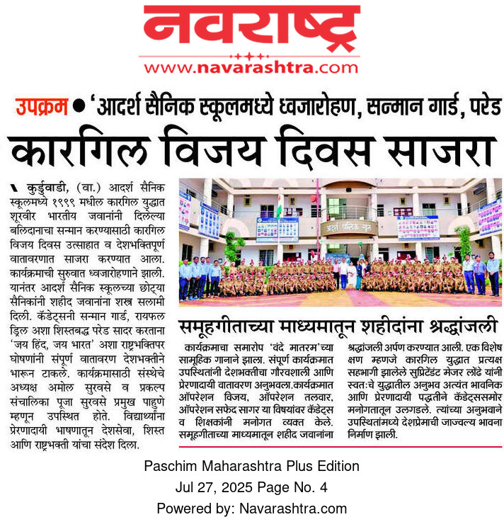 Adarsh Public Sainik School Kurduwadi stands as a beacon of educational excellence in the local community, revered for its commitment to providing quality education to the youth.